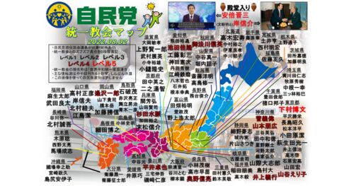 ○2022年8月7日追記 https://twitter.com/Evil_Red_Fox/status/1554456193564700672 肝心のツイートを埋め込み忘れていました。 自民党統一教会マップとは、統一教会(現・世界平和統一家庭連合)と関係のある自民党国会議員(例外あり)を全員載せた地図。 その…